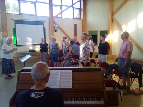 Staunton Singers are a mixed voice, community singing group. We have been making music since 2015, (see How we Started) We rehearse at Staunton School on Wednesday evenings from 7:00 - 9:00, with an all important break for tea/coffee and biscuits! Currently we have 14 members and we sing a wide range of genres from Abba to Handel with much in between. We welcome new members especially if they sing tenor or bass! If you would like to come and have a go, please go to the Join Us page and complete the contact form.